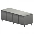 Chef Table, cabinet base with hinged doors, 96"W x 30"D x 34-3/4"H overall size, 14/304 stainless steel top, 18/304 stainless steel body, center mullion, (2) sets of hinged doors, 6" stainless steel legs with 1" height adjustment, stainless steel feet, NSF (3-10 day lead time)