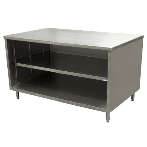 Chef Table, cabinet base with open front, 48"W x 36"D x 34-3/4"H overall size, 14/304 stainless steel top, 18/304 stainless steel body, enclosed with stainless steel panels on sides & rear, 6” stainless steel legs with 1" height adjustment, stainless steel feet, NSF