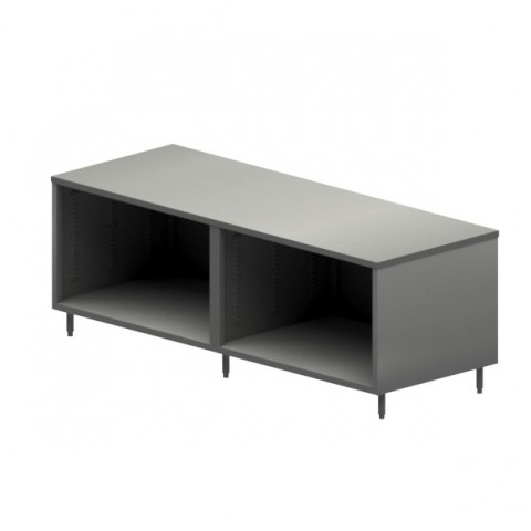 Chef Table, cabinet base with open front, 96"W x 36"D x 34-3/4"H overall size, 14/304 stainless steel top, 18/304 stainless steel body, center mullion, enclosed with stainless steel panels on sides & rear, 6” stainless steel legs with 1" height adjustment, stainless steel feet, NSF