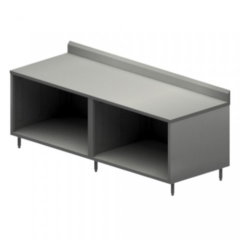 Chef Table, cabinet base with open front, 96"W x 30"D x 39-3/4"H overall size, 14/304 stainless steel top with 5" back riser, 18/304 stainless steel body, center mullion, 6” stainless steel legs with 1" height adjustment, stainless steel feet, NSF