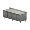 Chef Table, cabinet base with hinged doors & locks, 96"W x 36"D x 39-3/4"H overall size, 14/304 stainless steel top with 5" back riser, 18/304 stainless steel body, center mullion, (2) sets of doors with locks, 6” stainless steel legs with 1" height adjustment, stainless steel feet, NSF (3-10 day lead time)