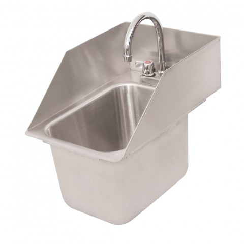 Deep Drawn Drop-In Sink, one compartment, 12-5/8"W x 18-1/2"D x 15-1/2"H overall size, (1) 10" wide x 14" front-to-back x 10" deep compartment, includes deck mount faucet (BKD-5G-G), 6"H splashes on sides & rear, includes basket drain (BKDR-4), 18/304 stainless steel construction, lead free, NSF