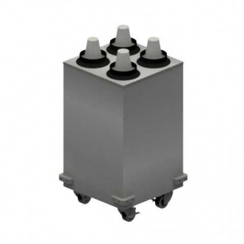 Mobile Cup Dispenser, 17"W x 17"D x 31"H, (4) total dispensers (2 rows of 2), accepts 8 oz to 46 oz size cups, 18/304 stainless steel cabinet, bumper guards, (4) swivel casters with locks, NSF