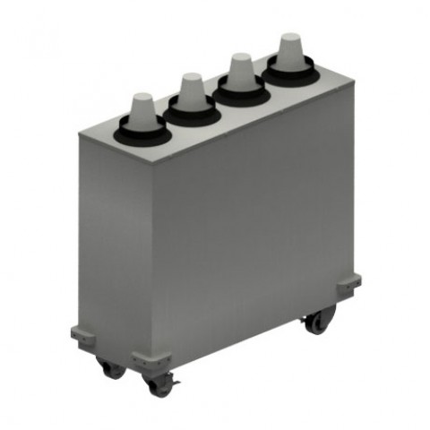 Mobile Cup Dispenser, 12"W x 33"D x 31"H, (4) inline dispensers, accepts 8 oz to 46 oz size cups, 18/304 stainless steel cabinet, bumper guards, (4) swivel casters with locks, NSF