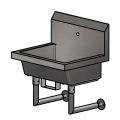 Single Station Handwash Sink, wall mounted, single hole splash mount faucet hole, 24"W x 19-7/8" front-to-back x 8" deep bowl, knee valve bracket, 14/304 stainless steel sink, basket drain, 18 gauge stainless steel legs & supports, NSF (3-5 day lead time)