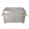 Cashier-Serve Counter with Hinged Doors, 60"W x 30"D x 34-3/4"H, 14 gauge stainless steel top, 18 gauge stainless steel body, 12-1/2" drop shelf for serving trays, built-in urn trough with drain on door side, adjustable undershelf, standard stainless steel legs, NSF (3-10 day lead time)