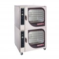 Convection Oven, electric, stacked, (14) 12" x 20" x 2.5" full size hotel pan or (7) 18" x 26" full size sheet pan capacity per deck, double paned glass door, 4-speed reversible fan, 4" temperature probe, programmable manual control stores up to 100 recipes, (7) wire shelves, retractable hose reel, hardware & 4" casters, (2) 1/2 hp, 38.0 kw total, cETLus, NSF
