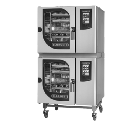 Blodgett INVOQ Model No. 61BLE/61BLE, Combi Oven Steamer, Electric, boilerless, 61BLE stacked on 61BLE, (10) 12" x 20" hotel pan capacity or (5) + (5) full size 18" x 26" sheet pan capacity (using MultiRack option), Stacking kit included, (2) + (2) side racks with non-tilt support rails, (5) + (5) wire shelvestouch screen controls, multiple cooking modes, SmartChef, MenuPlanner, CombiSpeed/CombiSense, stores up to 1,500 recipes, built-in hand shower, CombiSteam: Injection Steam, external temperature probe, Delta‐T cooking, Cook & Hold, USB port, Cloud Connectivity (optional), HACCP, CareCycle Tablet-based automatic cleaning system, heat protection with triple‐pane glass door, stainless steel exterior & interior, cULus, NSF, CE, ENERGY STAR®