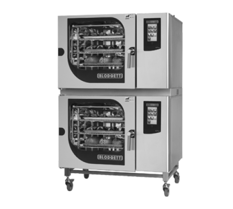 Blodgett INVOQ Model No. 62BE/62BE, Combi Oven Steamer, Electric, boiler, 62BE stacked on 62BE, (7) + (7) full size 18" x 26" sheet pan or (28) 12" x 20" hotel pan capacity, Stacking kit included, (2) + (2) side racks with non-tilt support rails, (5) + (5) wire shelves, touch screen controls, multiple cooking modes, SmartChef, MenuPlanner, CombiSpeed/CombiSense, stores up to 1,500 recipes, built-in hand shower, HybridSteam: Injection Steam & Boiler Steam, external temperature probe, Delta‐T cooking, Cook & Hold, USB port, Cloud Connectivity (optional), HACCP, CareCycle Tablet-based automatic cleaning system, heat protection with triple‐pane glass door, stainless steel exterior & interior, cULus, NSF, CE, ENERGY STAR®