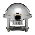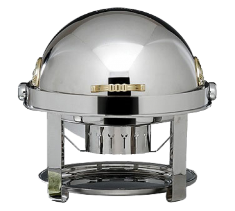 Elite Chafer, round, 2 gallon, stainless steel with gold-plated Contemporary legs, handles & medallions, dripless water pan & cover, windguard, full roll down & halfway locking cover, slow down lock mechanism, Limited Lifetime Warranty