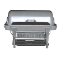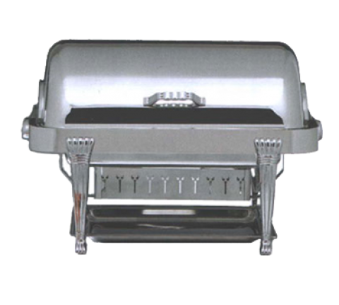 Elite Chafer, rectangular, 2 gallon, stainless steel with Aurora legs & chrome handles & medallions, dripless water pan & cover, windguard, full roll down & halfway locking cover, slow down lock mechanism, Limited Lifetime Warranty