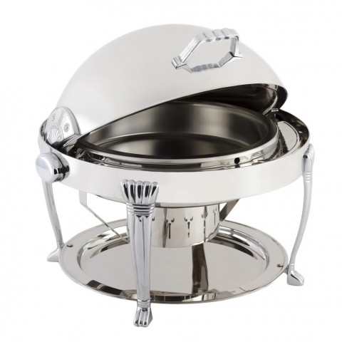 Elite Chafer, round, 2 gallon, silver plated with Aurora legs, handles & medallions, dripless water pan & cover, windguard, full roll down & halfway locking cover, slow down lock mechanism, Limited Lifetime Warranty (contact factory for price)