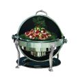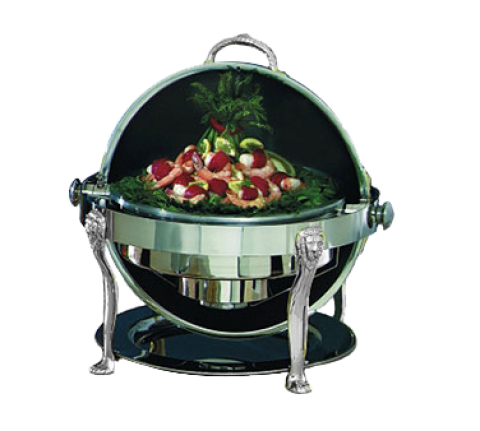 Elite Chafer, round, 2 gallon, with gold-plated Lion legs, handles & medallions, dripless water pan & cover, windguard, full roll down & halfway locking cover, slow down lock mechanism, Limited Lifetime Warranty