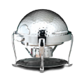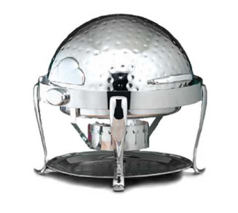 Elite Chafer, round, 2 gallon, stainless steel with chrome Roman legs, handles & medallions, dripless water pan & cover, windguard, full roll down & halfway locking cover, slow down lock mechanism, hammered finish, Limited Lifetime Warranty