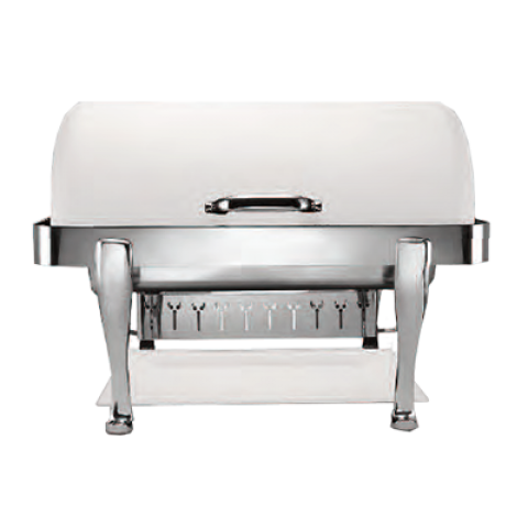 Elite Chafer, rectangular, 2 gallon, stainless steel with chrome Roman legs, handles & medallions, dripless water pan & cover, windguard, full roll down & halfway locking cover, slow down lock mechanism, Bianco finish, lifetime warranty