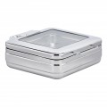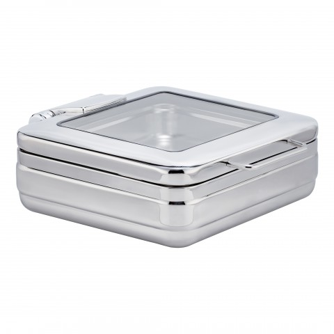 Induction Chafer, 15-3/4" L x 19" W x 5-3/8" H, rectangular, 1-1/2 gallon, 3/4 size, glass hinged cover, without stand, includes food pan, 18/8 stainless steel