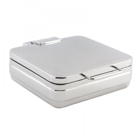 Induction Chafer, 15-3/4" L x 19" W x 5-3/8" H, rectangular, 1-1/2 gallon, 3/4 size, solid hinged cover, without stand, includes food pan, 18/8 stainless steel
