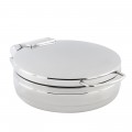 Induction Chafer, 14-3/4" L x 19" W x 5-1/8" H, round, 1 gallon, small round chafer, solid hinged cover, without stand, includes food pan, 18/8 stainless steel