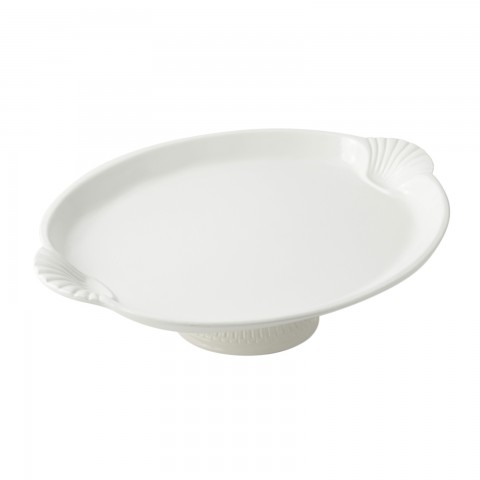 Platter, 20" x 14" x 4-1/4", pedestal, aluminum with ceramic-look coating, Sandstone, Smoke Gray