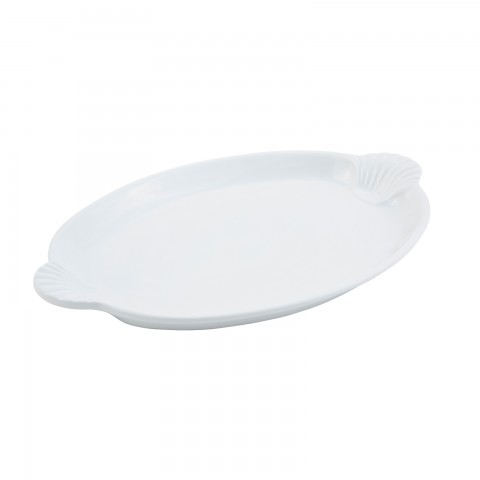 Platter, 14-1/4" x 20-1/4", with shell handles, aluminum with ceramic-look coating, Sandstone, Matte Brown, NSF