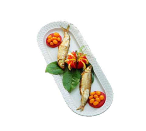 Trellis Fish Platter, 8-1/2" x 22-5/8", aluminum with ceramic-look coating, Sandstone, Ivory, NSF