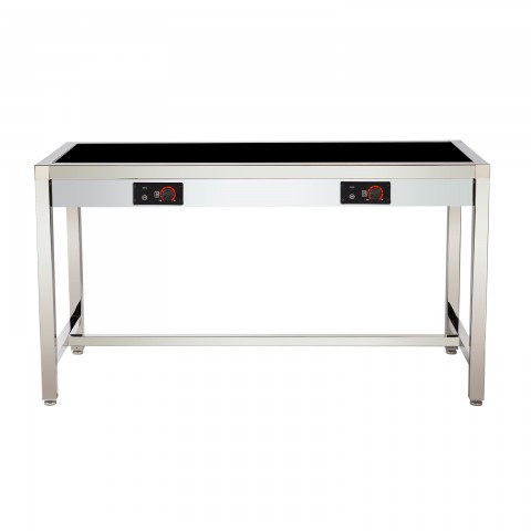 Freedom Tower Table, 62"L x 26"W x 34"H, with two inductions stoves (12083), black ceramic top, chrome plated brass frame