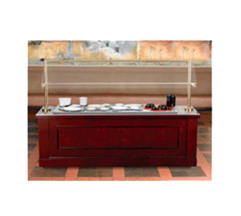 American Buffet Station, 8'L x 30"W, with (5) pan cold wells, single sided, brass clear view sneeze guard, NSF