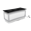 Contemporary Buffet, 69" L x 30" W x 34" H, with three built in induction stoves, floating top, (2) 120v/60/1-ph, 5400 watts, 45 amps, NEMA (1) L5-30P, (1) L5-20P