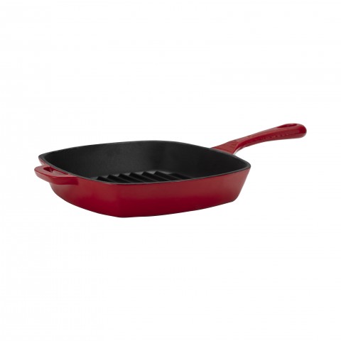 Grill Pan, 17-3/4"L x 10-1/4"W x 2-1/4"H, rectangular, with handles, Enameled Cast Iron, red