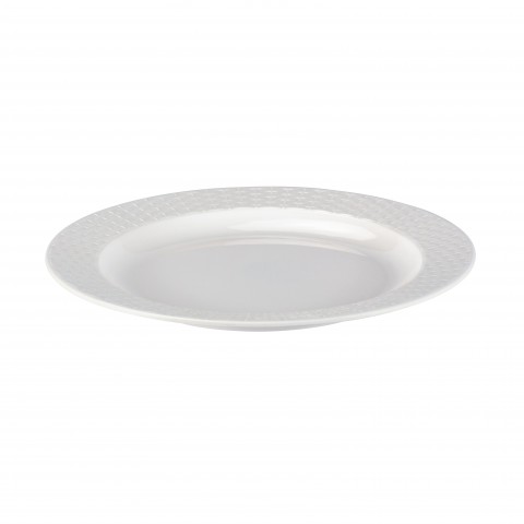 Buffet Plate, 12-1/4" dia., round, melamine, high gloss white/woven pattern border