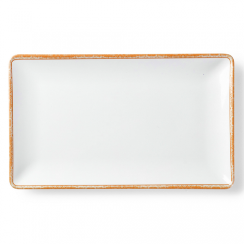 Tidal Platter, 10.25" x 6.25", rectangular, melamine, dishwasher safe, white, orange decal (minimum order = case quantity)