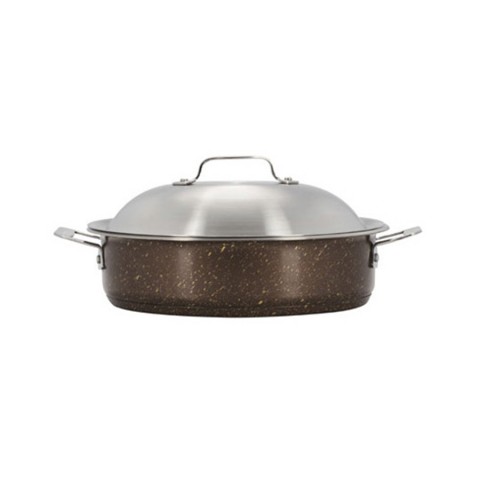 HotStone Cucina Saute Pan, 4 qt., 11-3/16" dia. x 2-7/8" H, round, with cover, (2) 1-1/4" square riveted handles, induction bottom, oven safe up to 375°F, 18/8 stainless steel, Coffee