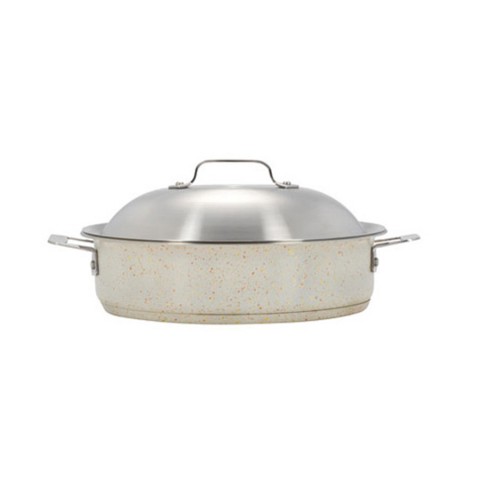 HotStone Cucina Saute Pan, 4 qt., 11-3/16" dia. x 2-7/8" H, round, with cover, (2) 1-1/4" square riveted handles, induction bottom, oven safe up to 375°F, 18/8 stainless steel, Desert