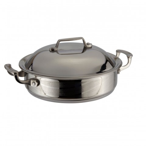 Cucina Sauté Pan, 4 qt., 11-3/16" dia. x 2-7/8"H, (2) 1-1/4" square handles, with lid, induction bottom, stainless steel, wave finish