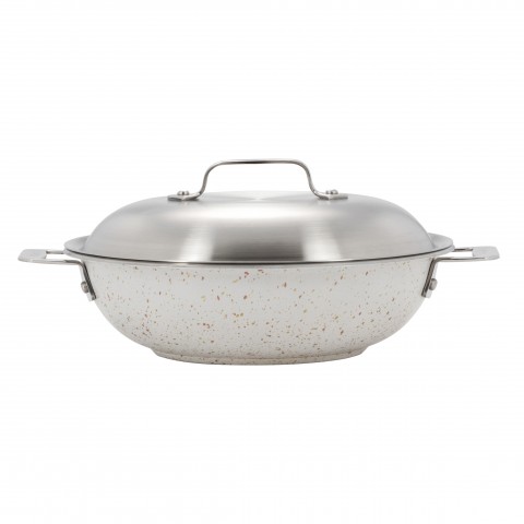 HotStone Cucina Braiser Pan, 3-1/2 qt., 13-1/4" dia. x 2-1/4" H, round, with cover, (2) 1-3/8" square handles, induction bottom, oven safe to 375°F, 18/8 stainless steel, Desert