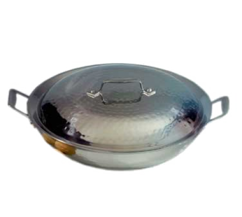 Cucina Braiser Pan, 3-1/2 qt., 13-1/4" dia. x 2-5/8"H, (2) 1-3/8" square handles, with lid, induction bottom, stainless steel, hammered finish