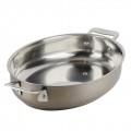 HotStone Cucina Au Gratin, 48 oz., 9-5/8" x 7-11/16" x 2-1/4" H, oval, (2) 1-1/8" square handles, induction bottom, oven safe to 375°F, 18/8 stainless steel, taupe