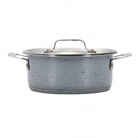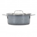 HotStone Cucina Dish, 36 oz., 6-3/4" dia. x 2-5/8" H, round, with cover, (2) 1" square riveted handles, induction bottom, oven safe up to 375°F, 18/8 stainless steel, Starlight