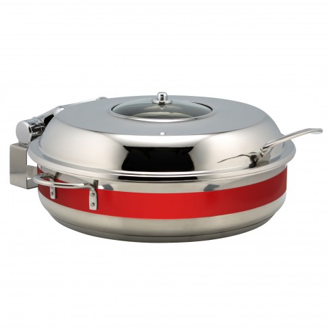 Classic Country French Pot, 6 qt., 12-3/8" dia. x 3"H, round, with slow down hinged glass lid, handled, induction bottom, stainless steel, red, NSF