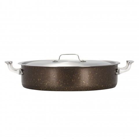 HotStone Cucina Pot, 6 qt., 12-3/8" dia. x 3" H, round, with cover, (2) 2" round riveted handles, induction bottom, oven safe up to 375°F, 18/8 stainless steel, Coffee