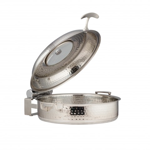 Cucina Pot, 6 qt., 12-3/8" dia. x 3", round, with slow down hinged glass lid, handled, induction bottom, hammered finish