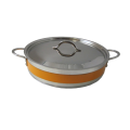Classic Country French Pot, 9 qt., 14-3/4" dia. x 3-3/8"H, round, with cover, handled, induction bottom, stainless steel, orange, NSF