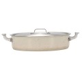HotStone Cucina Pot, 9 qt., 14-3/4" dia. x 3-5/8" H, round, with cover, (2) 2" round riveted handles, induction bottom, oven safe up to 375°F, 18/8 stainless steel, Desert