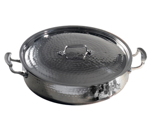 Cucina Pot, 9 qt., 14-3/4" dia. x 3-3/8", round, with cover, handled, induction bottom, stainless steel, hammered finish