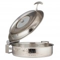 Cucina Pot, 9 qt., 14-3/4" dia. x 3-3/8", round, with slow down hinged glass lid, handled, induction bottom, stainless steel, hammered finish