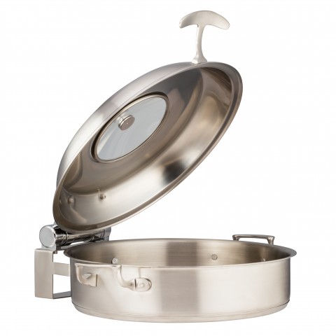 Cucina Pot, 9 qt., 14-3/4" dia. x 3-3/8", round, with slow down hinged glass lid, handled, induction bottom, stainless steel