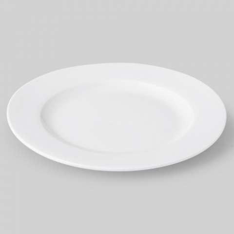 Rim Plate, 7" DIA x .75"H, Round, Dishwasher Safe, Oven Safe, Microwave Safe, Lead Free, Porcelain Alumina Vitfrieid Body (high temperature firing 2430*F), Bright White (3 Year Chip Warranty), Mezzo (minimum order = case quantity)