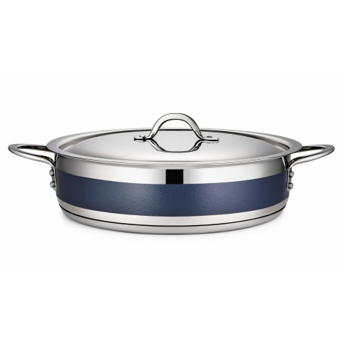 Country French X Pot, 6 qt., 12-3/8" dia. x 3"H, round, with lid, induction bottom, stainless steel, cobalt blue