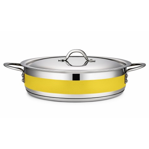 Country French X Pot, 6 qt., 12-3/8" dia. x 3"H, round, with lid, induction bottom, stainless steel, yellow