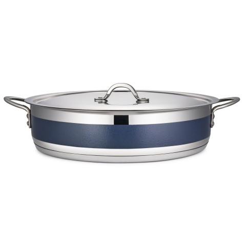 Country French X Pot, 9 qt., 14-3/4" dia. x 3-3/8"H, round, with lid, induction bottom, stainless steel, cobalt blue